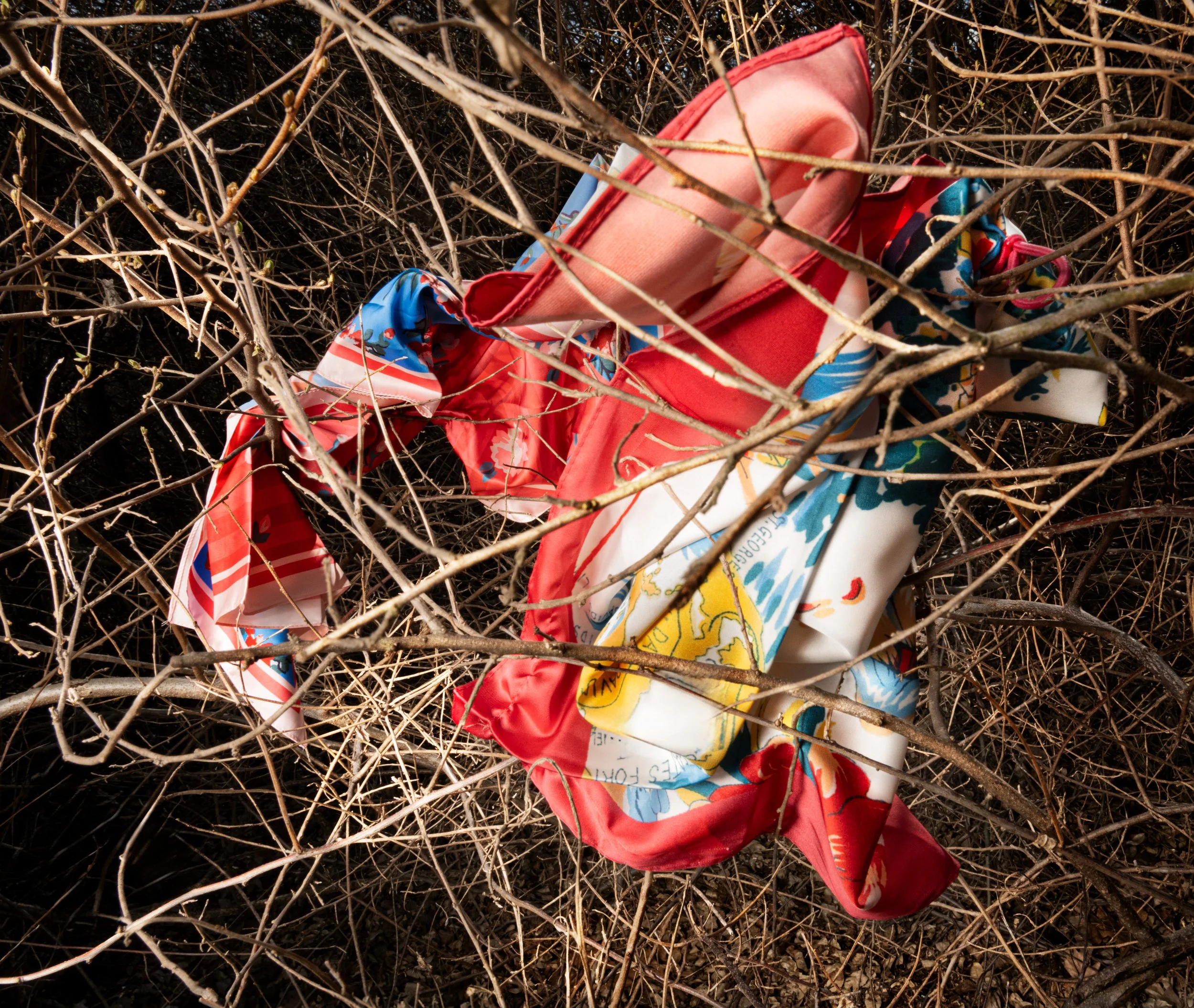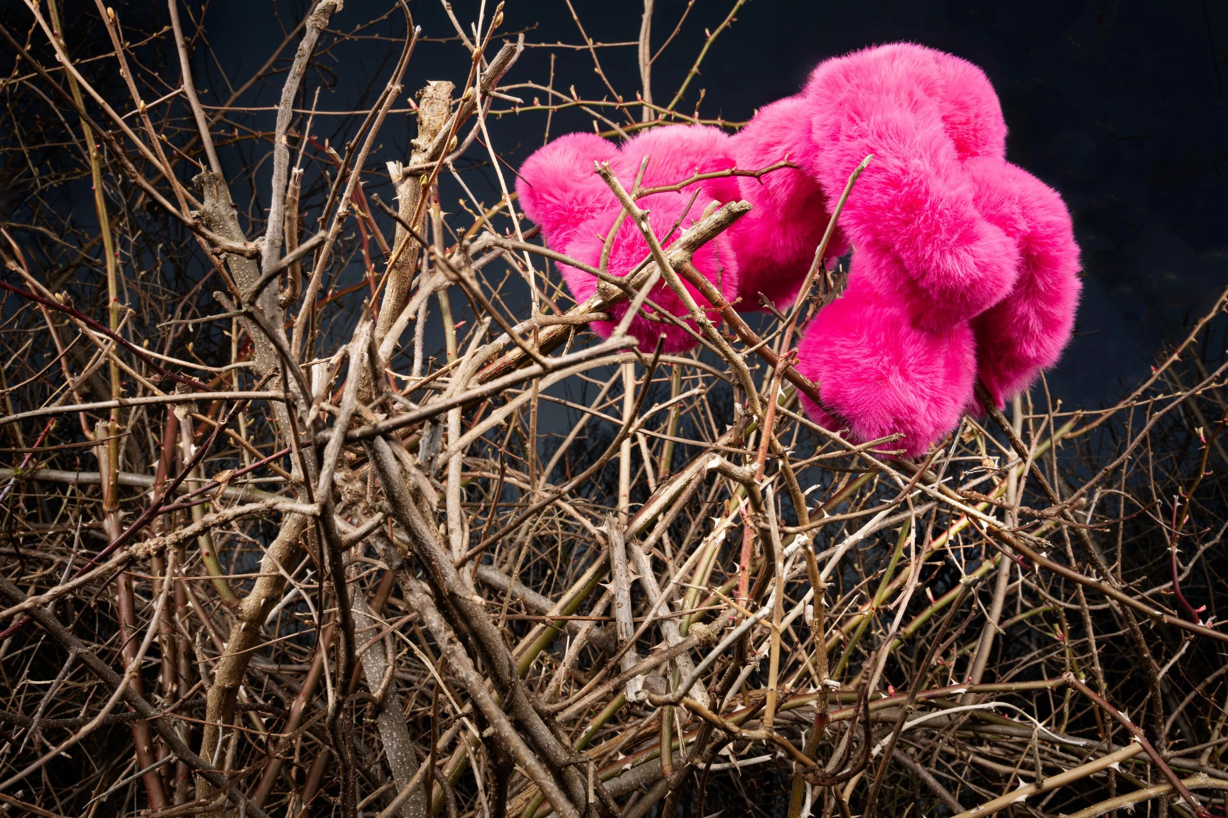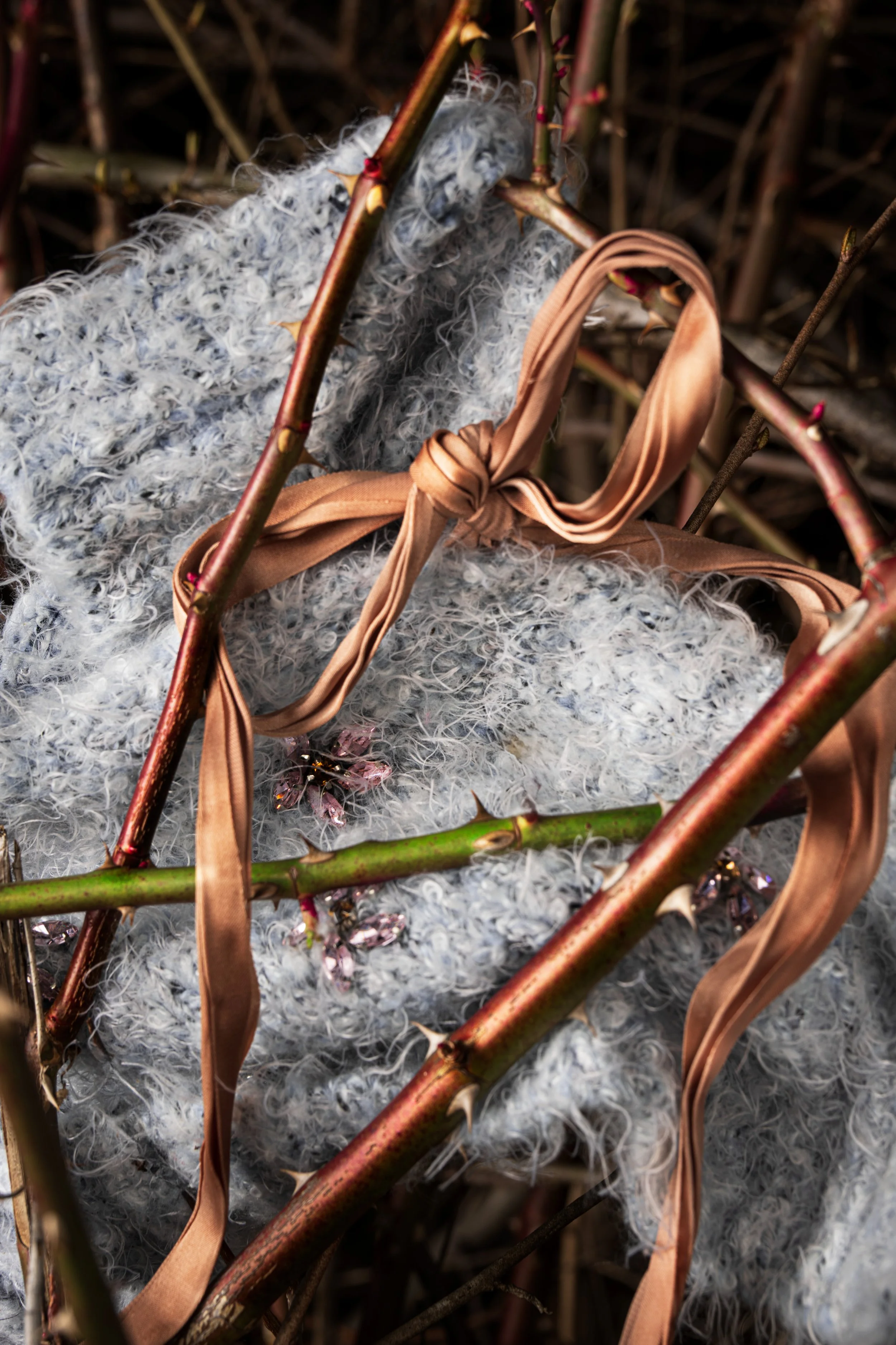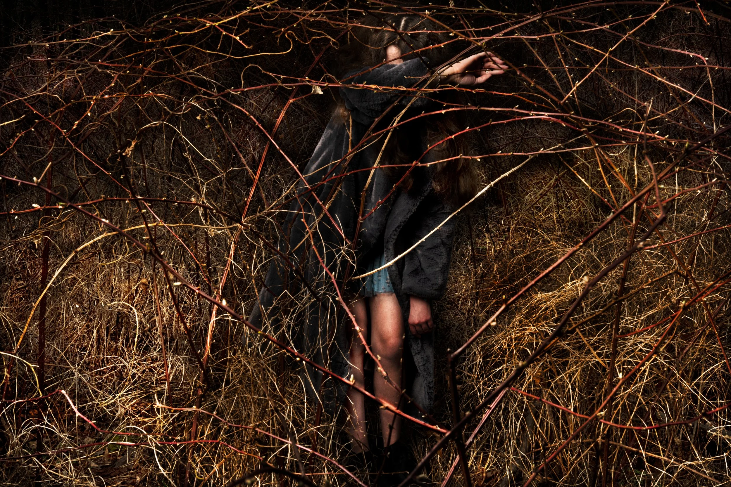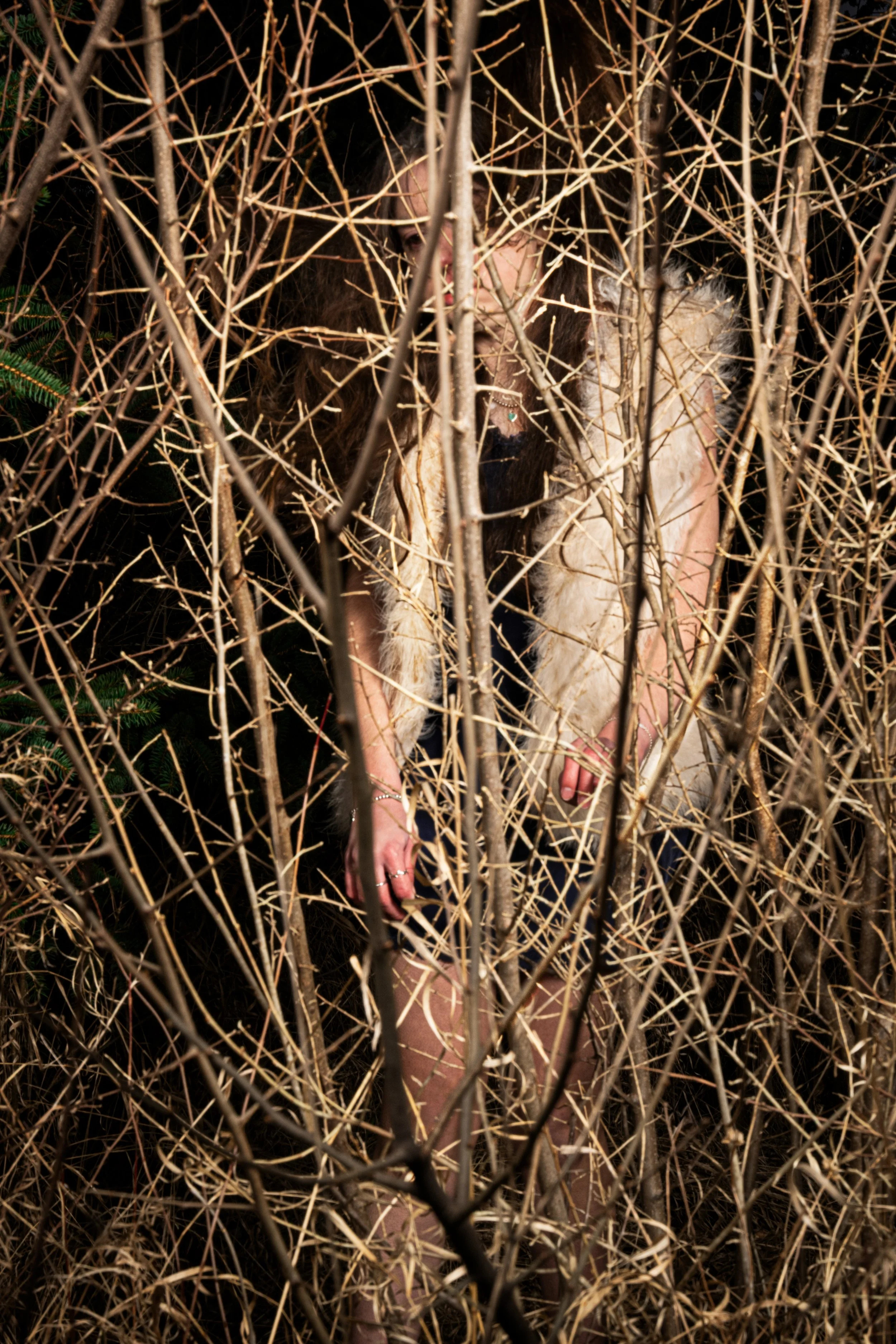 This photo series shows affliction and intrusion through various soft elements covered taken over by a sharp environment. Soft accessories and close ups of self portraiture are displayed in various thorn shrubs throughout this series. These dark toned scenes and rough textures emphasize piercing emotions. Overall, sharp environments are over powering the softness to show the thoughts of affliction and intrusion.